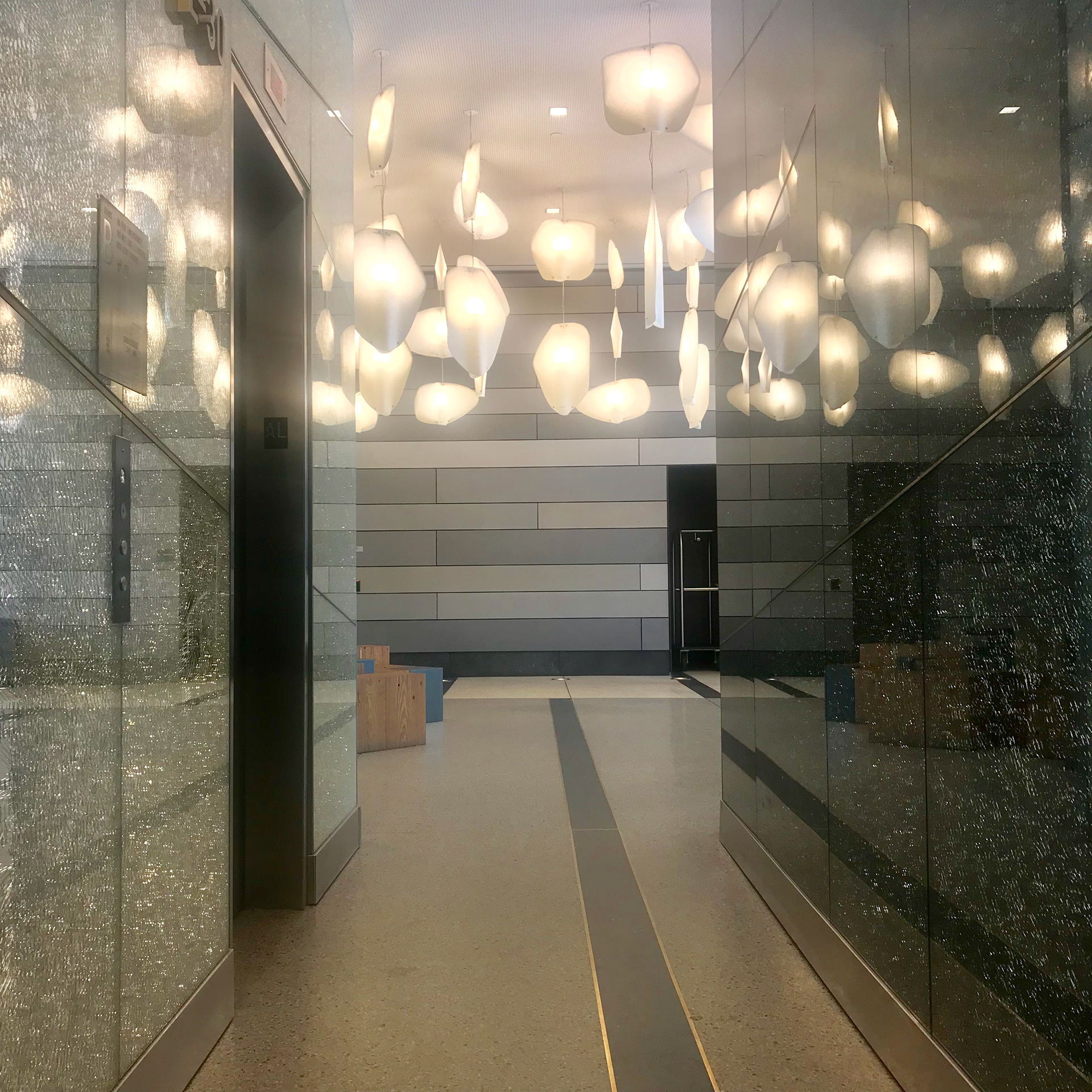 L’immeuble le plus haut de Brooklyn, un hall d’accueil et une installation signée Octavio Amado comme éclairage.